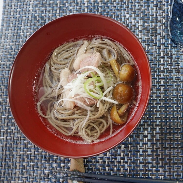 残ったお汁を蕎麦にかけて鴨南蛮に。鴨の旨みを残さず全部いただきます。