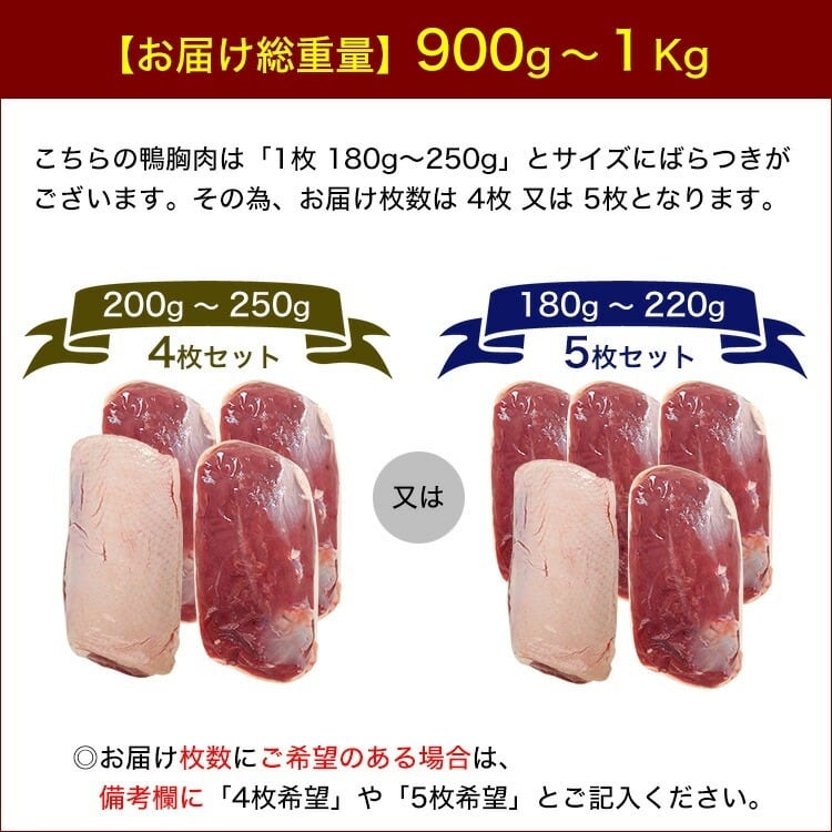 鴨肉は「1枚づつ真空パック」されていますので、使いたいぶんだけお使いいただけます。