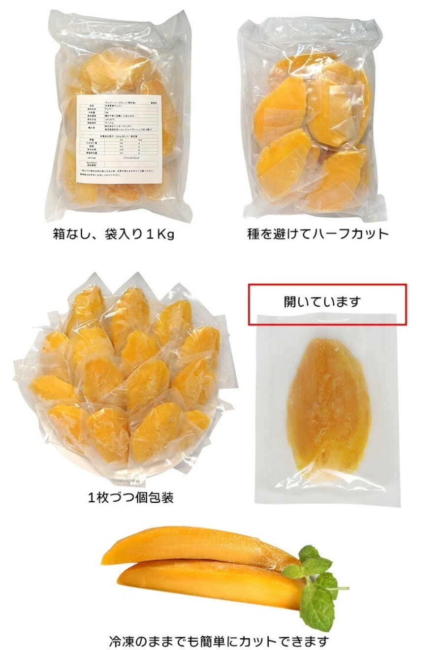 マンゴー ハーフカット 冷凍マンゴー 1Kg ベトナム産 カッチュー種 フローズンマンゴー 個包装 冷凍